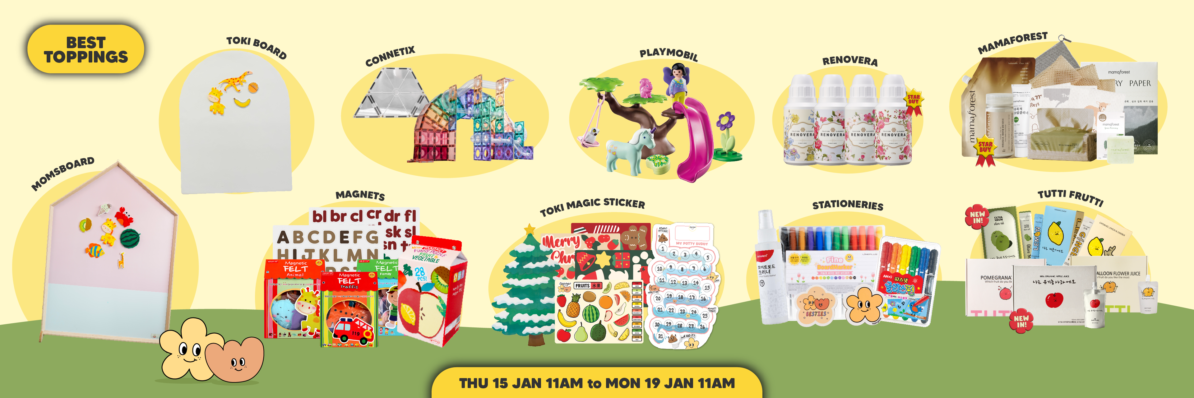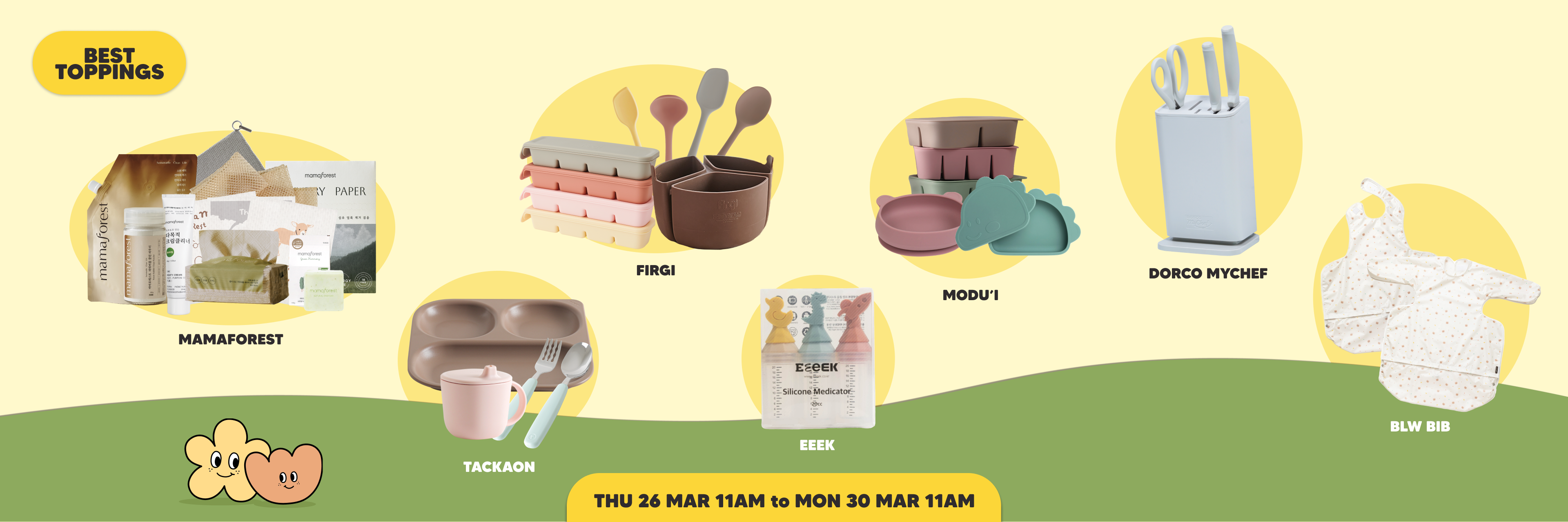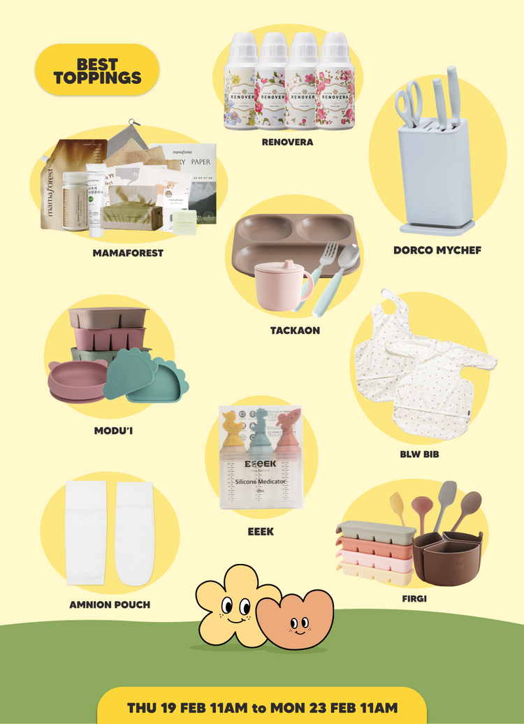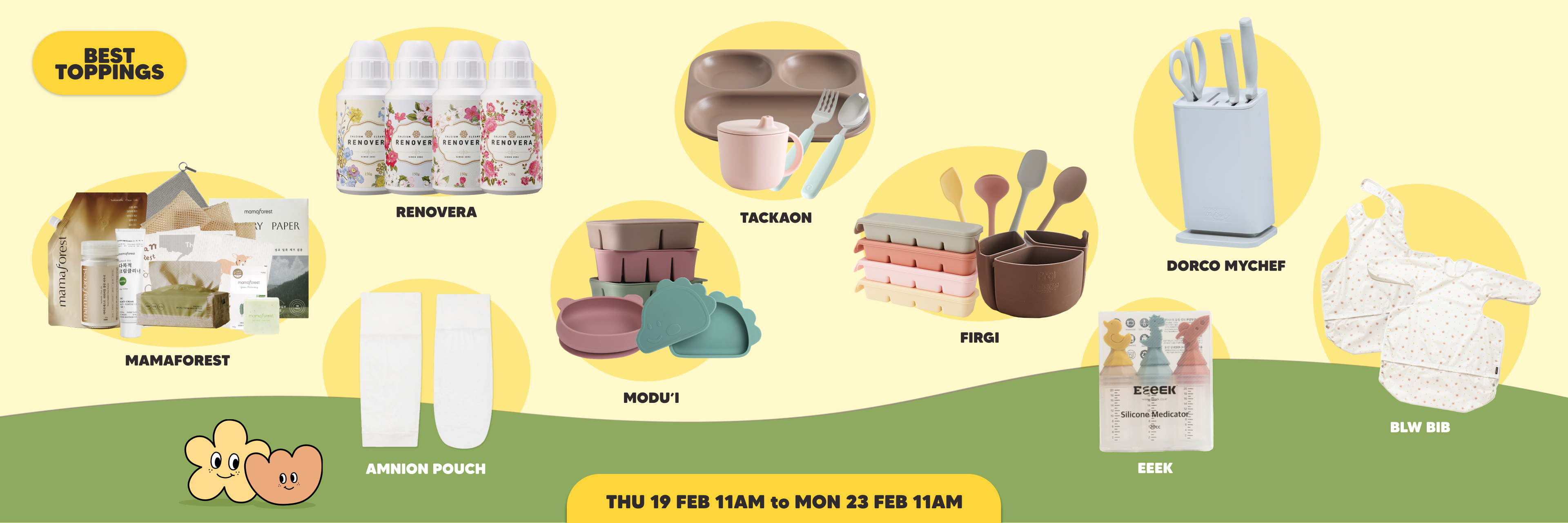 Ivenet, Atopalm, Real Barrier, Momsboard, Rosy Organic, Immunity Everyday, Tutti Frutti, Anela, Jilmajae, Non-Spicy Kimchi Cube, Sangha Farm, Ato Solution, Oraticx, Remy Remy, Attipas, EEEK, Firgi, MODU'i, Tackaon, Moskinto, WarmGrey Tail, Mamaforest, Renovera, ToppingsKids, Lineplus, Monami, Amos, Magneetopia, KEFII, TOKI Kiddie Cutter, Connetix