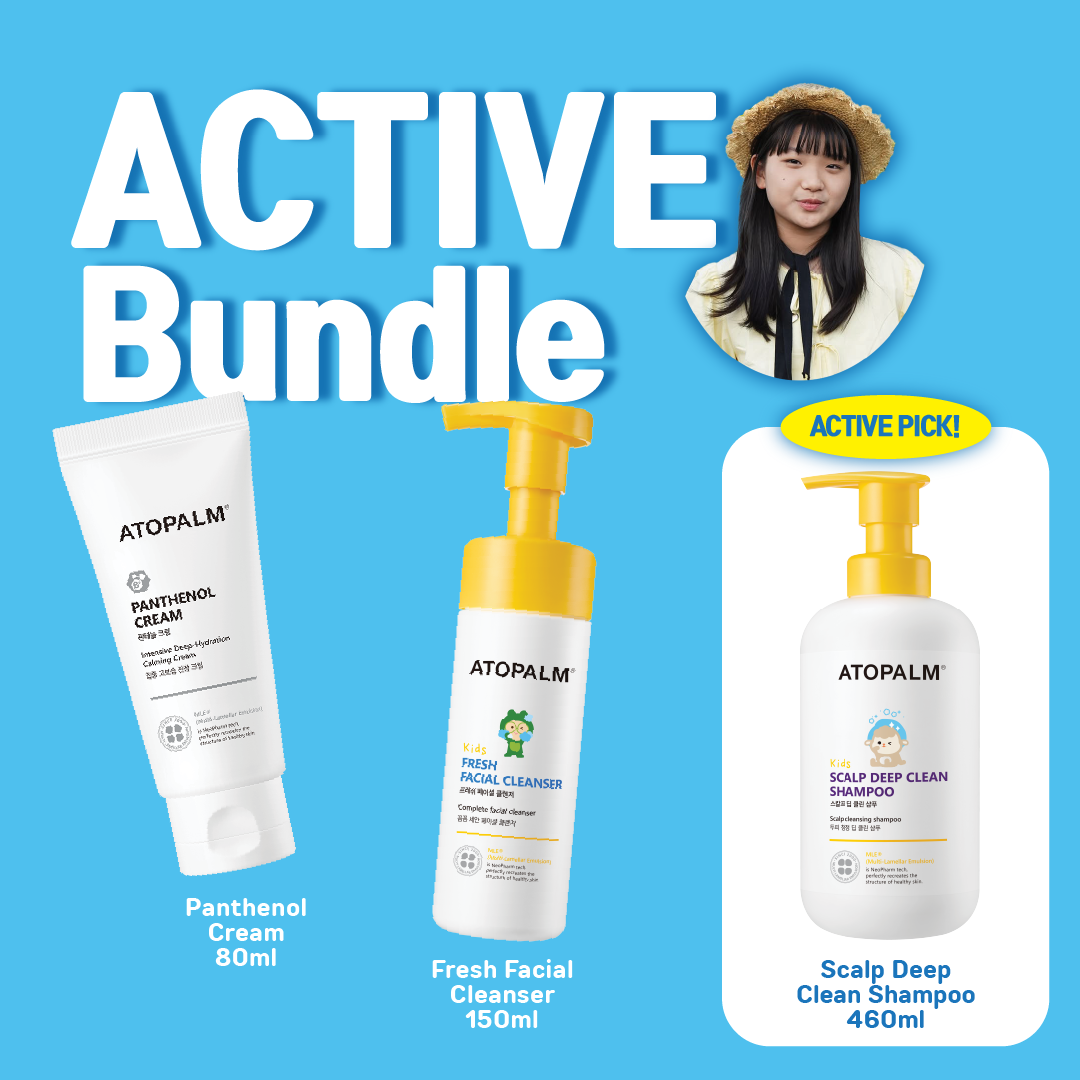 The ACTIVE Bundle includes Scalp Deep Clean Shampoo, that eliminates scalp odour and oil from active children's heads!