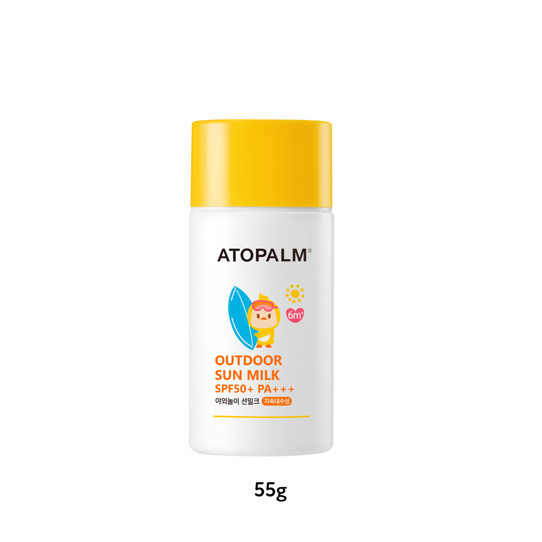 ATOPALM Suncare contains only physical sunscreen, which is suitable for babies and children's delicate skin. The difference between physical and chemical sunscreen is that physical sunscreen only stays on the surface of the skin and does not get absorbed beneath the skin layer. Mineral sunscreens typically leave a white cast, which is why some users opt for chemical sunscreens. However, with ATOPALM's MLE technology, you don't have to worry about white casts! Additionally, ATOPALM Suncare products contain various ingredients that moisturise and care for the skin, while maximising sun protection. It is highly recommended to use Zinc Mild Up Sun Cream for daily use and Outdoor Sun Milk for outdoor/beach play.