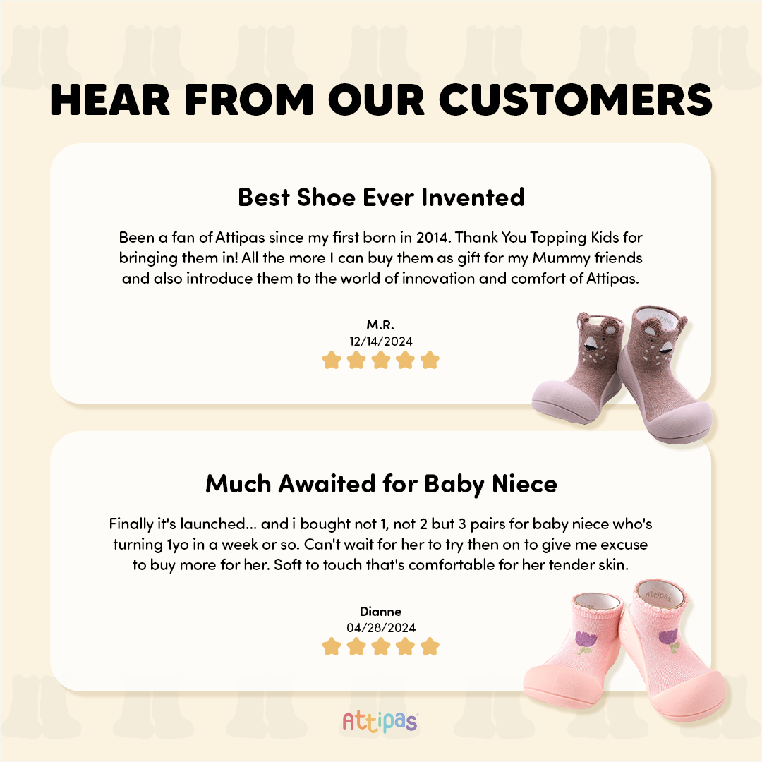 Thank you for choosing Attipas, Korea’s No.1 baby shoe brand! With your amazing love and support, Attipas has become one of Singapore’s most-loved baby shoes since its launch. We hope Attipas will continue to be there for your little ones’ first steps and cherish every precious moment with you. 👣✨