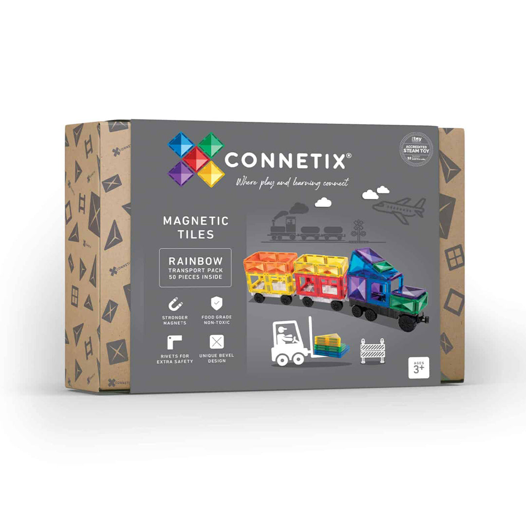 Discover STEAM learning as you navigate magnetism, shapes and colour to create your very own trucks and trains, aircrafts and ambulances, fire engines and forklifts. Explore your imagination and bring it to life with the Connetix Transport Pack.