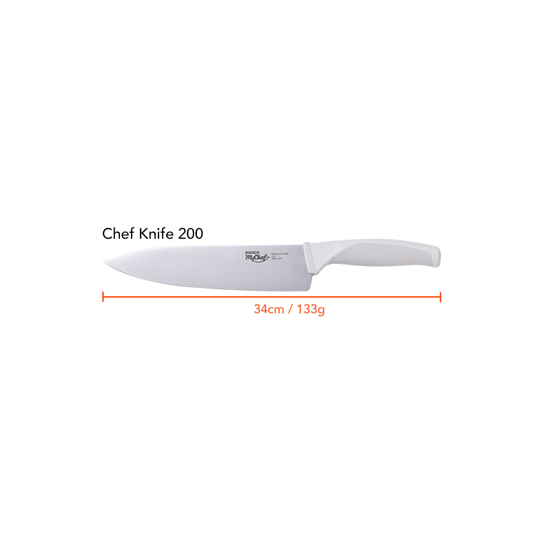 The Chef Knife is recommended for slicing meat and chopping vegetables.