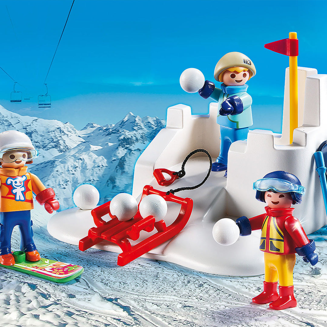 Accessories: 1 snow fort, 1 sledge, 1 pair of skis, 1 pair of ski poles, 1 snowboard, 1 flag pole, 2 helmets, 1 ski cap, 3 pairs of gloves, 2 goggles, 5 snowballs