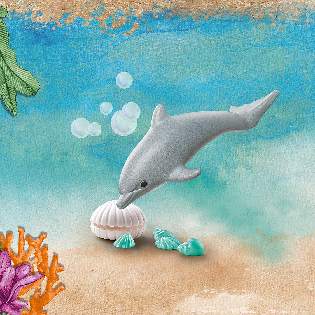 Accessories: 1 giant shell, 4 shells, 1 knowledge card 'young dolphin'