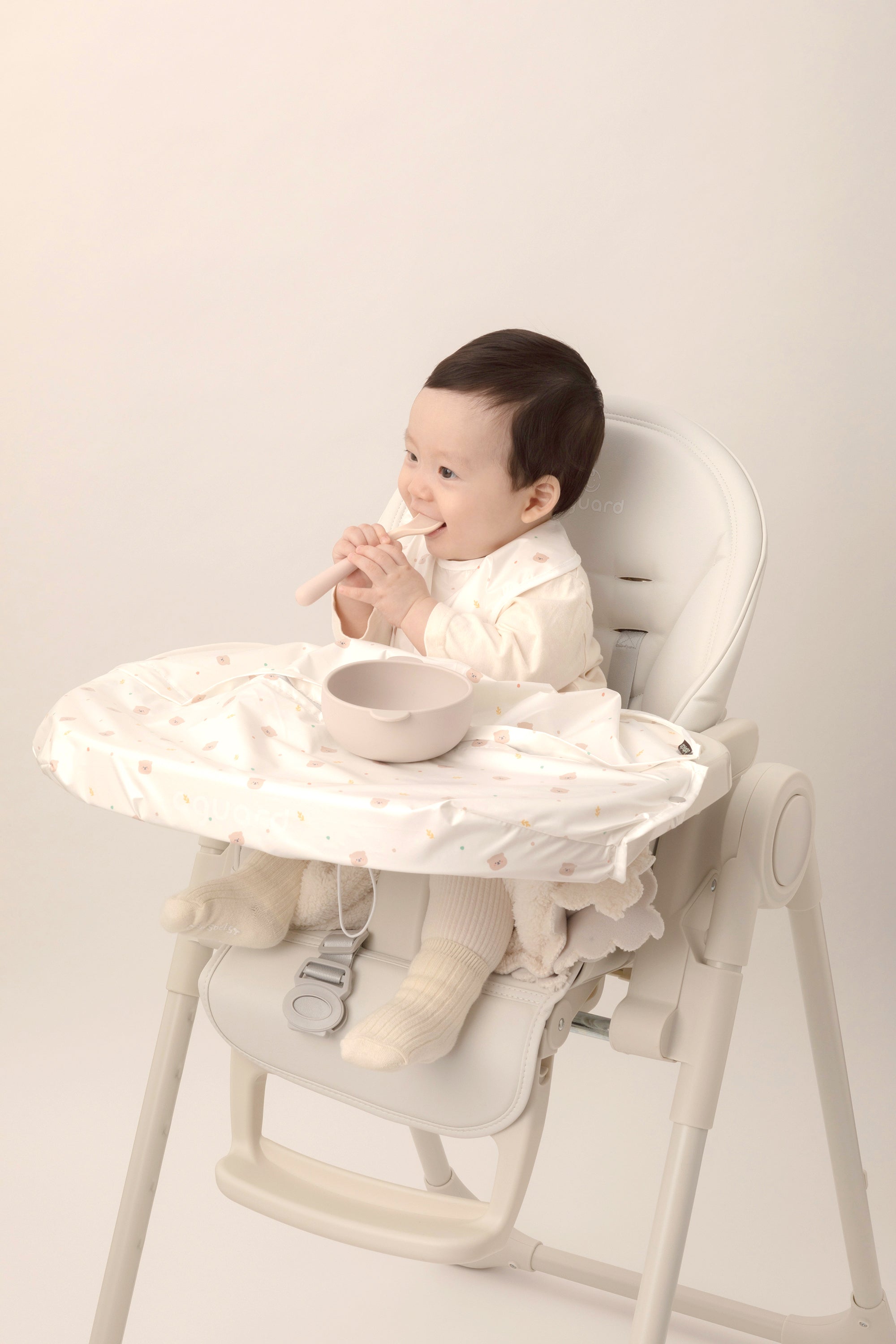 this bib has made feeding times for me a lot less stressful. i now just need to wipe the high chair instead of previously having to clear food and mess that went inside the grooves. the material is v light and airy yet waterproof. the only issue is that my baby likes to turn around so he gets his hands all over the back of the chair. maybe if there’s a version that covers the back of the chair that’ll be perfect.