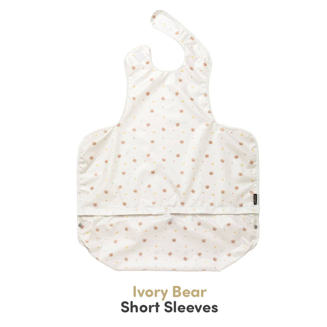 Love this bib because it’s so lightweight and the sleeveless version is so easy to wear - great for fidgety toddlers! Our child used a tray + bib kit previously but it’s so troublesome to wash and dry the tray so this bib is a great replacement! Just 1 thing to wash and dry!