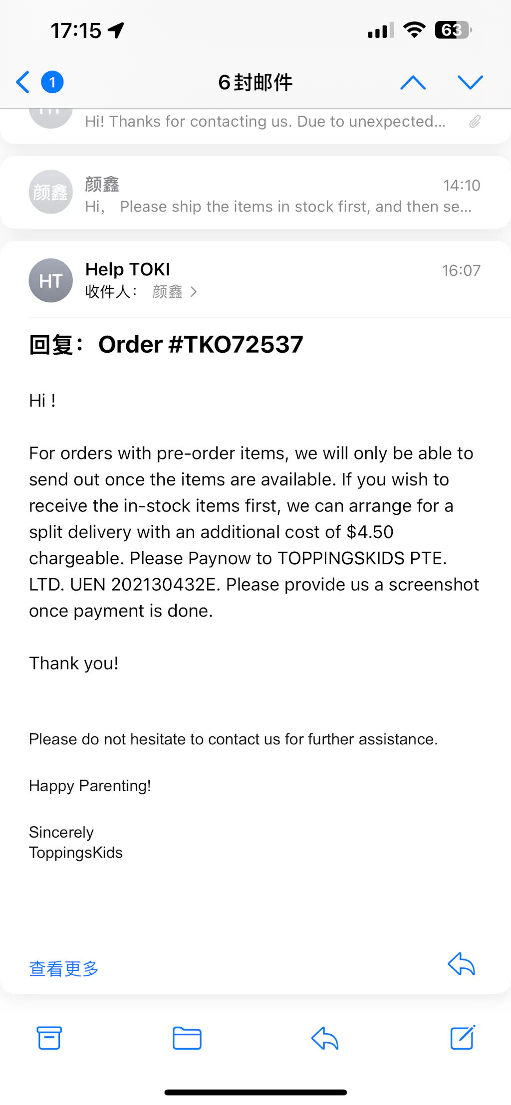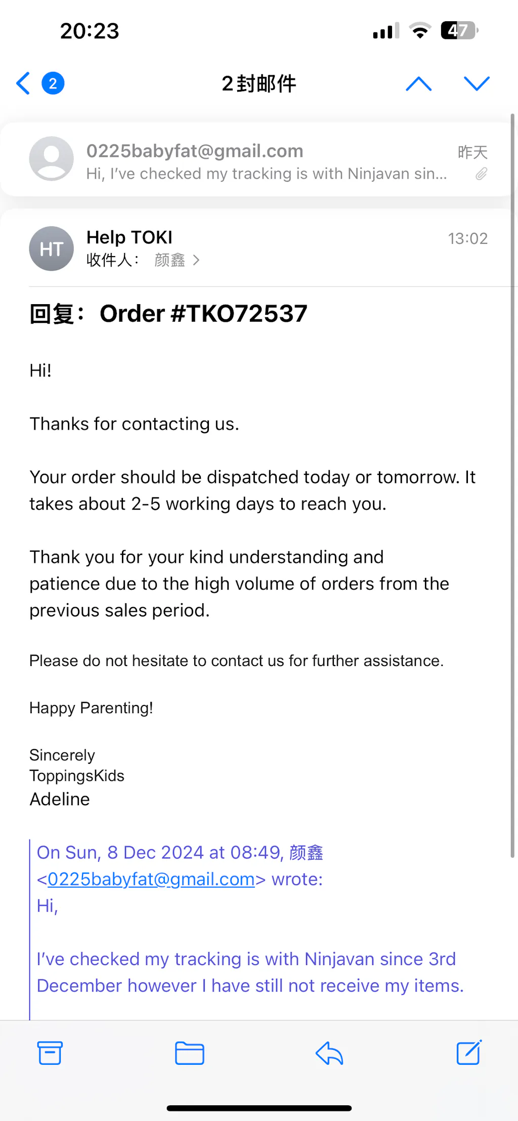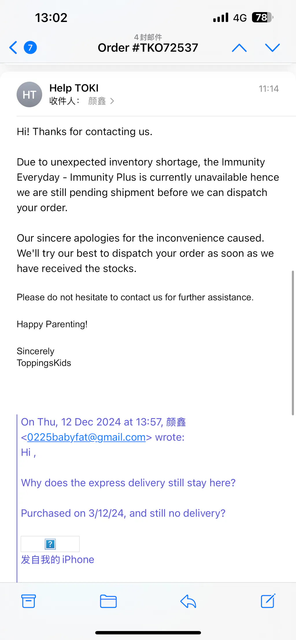 3/12/24 It was my first time to buy something on IG. After the purchase was successful, I thought I would receive the item successfully within a week. However, two weeks have passed and I still haven't received the item... A week ago, I sent an email to ask where my item was, and the reply I received was that it would take 2-5 working days. I waited another week and still had no news. I continued to send emails to inquire, and the reply I received was that some items were unexpectedly out of stock. Shouldn't customers be notified in advance of this situation? If I didn't ask, I would still wonder if such a large manufacturer would ship so slowly? I was very angry and asked if other items could be shipped first. The reply I got was that it would cost $4.5 for shipping. I was really speechless at the time. This situation is your problem, not my problem. Why do I need to pay for shipping? I bought a total of 5 products, not two products, why do I still need shipping? Why can't the other four products be shipped first? It feels ridiculous. It's really a failed shopping experience. From 3/12/24 to 12/12/24, the goods have not arrived. I hope the merchant can solve my problem as soon as possible so that I can receive the goods as soon as possible. Thank you.