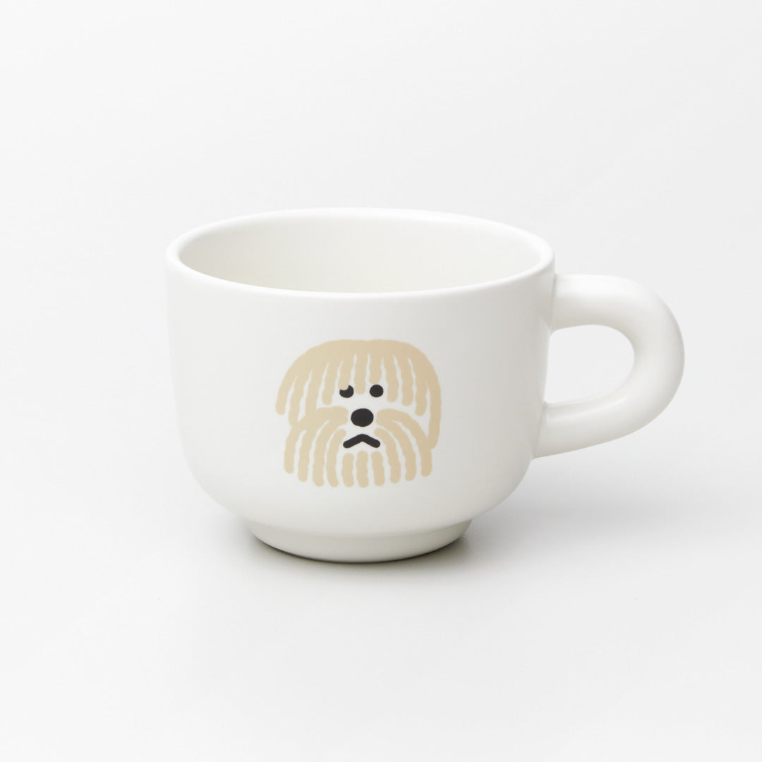 This is the Tube Milk Cup DOG SERIES with Fluffy Dog and Triangle Dog, drawn on a clear milk-coloured cup, showing off their charms.