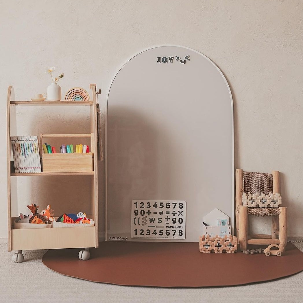 Many parents did not want to drill holes into their walls but still wished to have Momsboard for their children. Therefore based on feedback from parents, Momsboard HQ has come up with MomsRack which provides base support, provided if the top point is attached to the wall with methods such as 3M hooks or heavy duty double sided mounting tape.
