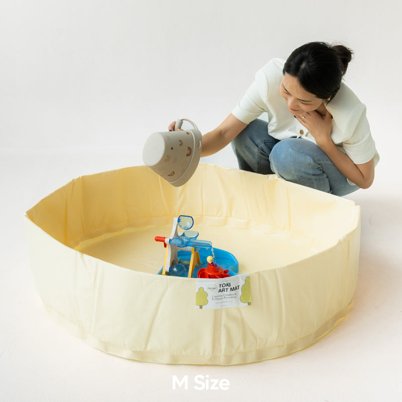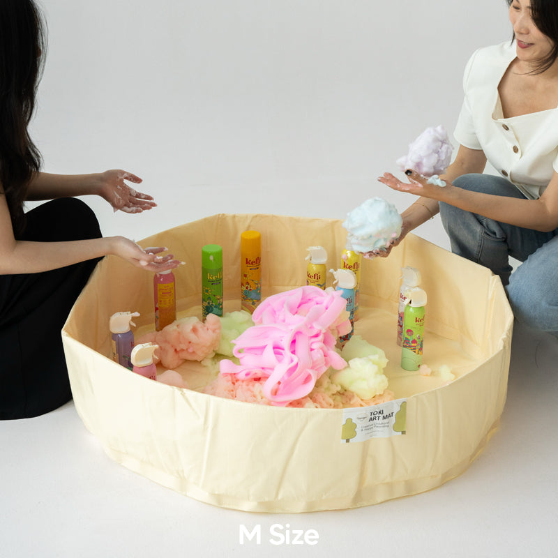 TOKI ART MAT version 2.0 is finally here and it is back with sturdier sides that bounce back up even if you step on it! This design also allows children to move freely in and out of the mat without tripping, while maintaining the mat's lightweight and foldable nature for easy storage. A storage bag is provided too!